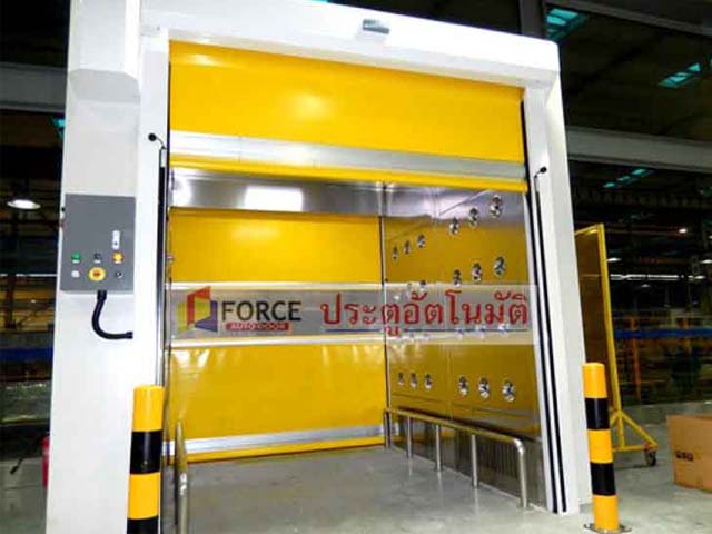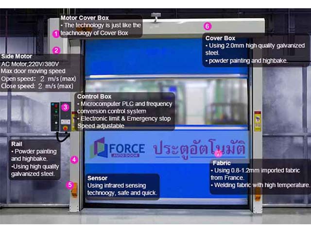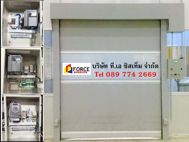 ระบบประตูม้วนผ้าใบความเร็วสูง ประตูไฮสปีด PVC hi speed door ประตูกันฝุ่น ประตูม้วนความเร็วสูง ประตูม้วนผ้าใบ PVC เสริมโครงอลูมิเนียม หรือแบบแถบ ZIP และแบบ Aluminum spiral rolling door ทำจากเหล็กหรืออลูมิเนียม ทนต่อแรงลมได้ดี เหมาะสำหรับใช้งานกับประตูอุตสาหกรรม โกดังขนถ่ายสินค้า สามารถกันฝุ่น, ขนถ่ายสินค้า, แบ่งโซนพื้นที่ มอเตอร์เป็นระบบ DC Brushless มีหลายขนาดให้เลือก อาทิ ขนาด 0.75kw, 1.5kw, 2.2kw มั่นใจได้เรื่องสปีด ความเสถียร เสาข้างมีอุปกรณ์ช่วยป้องกันผ้าใบ PVC เสียดสีกับเสา ติดตั้งง่าย พร้อมประกันอีก 1 ปี