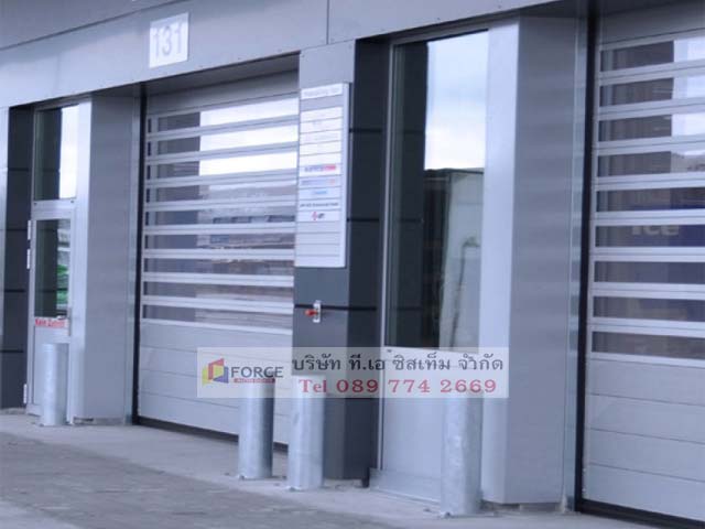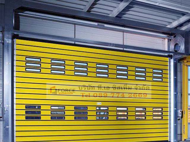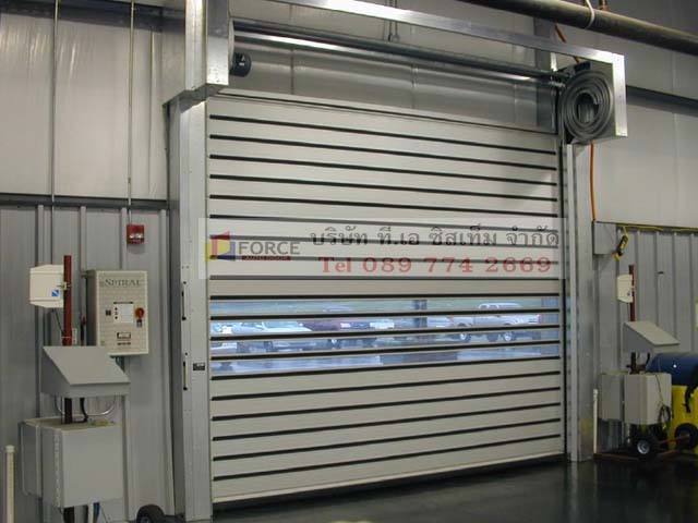 ระบบประตูม้วนผ้าใบความเร็วสูง ประตูไฮสปีด PVC hi speed door ประตูกันฝุ่น ประตูม้วนความเร็วสูง ประตูม้วนผ้าใบ PVC เสริมโครงอลูมิเนียม หรือแบบแถบ ZIP และแบบ Aluminum spiral rolling door ทำจากเหล็กหรืออลูมิเนียม ทนต่อแรงลมได้ดี เหมาะสำหรับใช้งานกับประตูอุตสาหกรรม โกดังขนถ่ายสินค้า สามารถกันฝุ่น, ขนถ่ายสินค้า, แบ่งโซนพื้นที่ มอเตอร์เป็นระบบ DC Brushless มีหลายขนาดให้เลือก อาทิ ขนาด 0.75kw, 1.5kw, 2.2kw มั่นใจได้เรื่องสปีด ความเสถียร เสาข้างมีอุปกรณ์ช่วยป้องกันผ้าใบ PVC เสียดสีกับเสา ติดตั้งง่าย พร้อมประกันอีก 1 ปี
